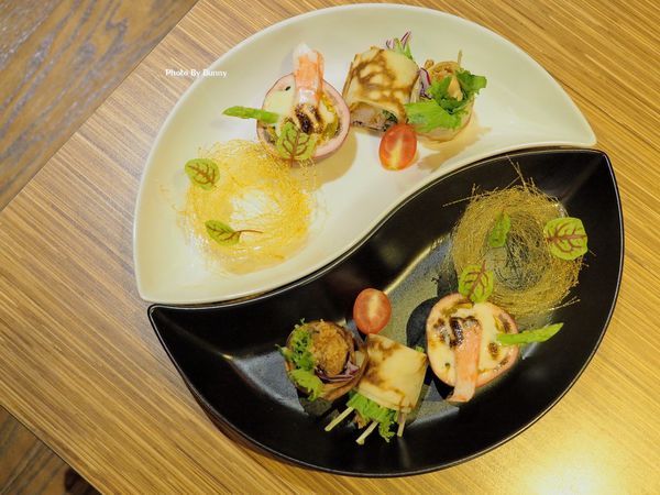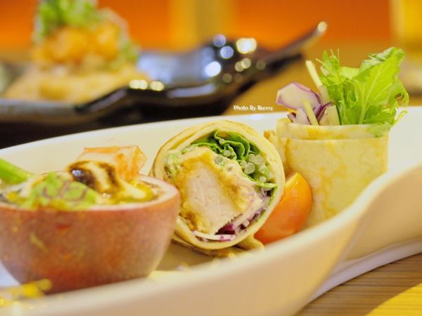 前菜以豬排蛋捲沙拉及百香焗烤搭配,