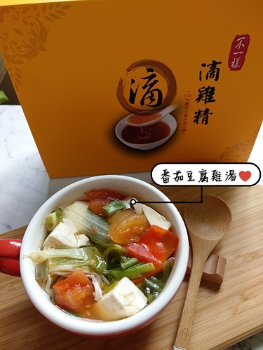 用滴雞精煮個番茄豆腐湯,取代人工味精,湯頭甘醇美味、營養滿分。