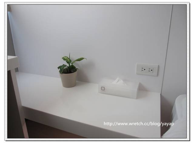 床邊有很寬的檯子可以放東西,所以舉凡NB、手機什麼的,都可以放這邊!