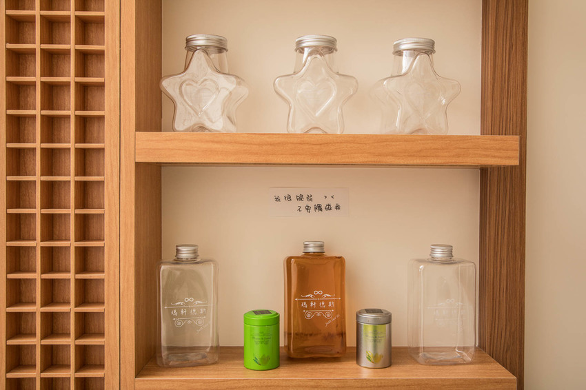 瑪軒德斯為了環保,店內飲料瓶子接採用可100%回收的寶特瓶,而且設計了許多超可愛的外型,像是夢幻星星瓶、威士忌瓶、易拉罐瓶的造型,讓喝飲料也能變得時尚又環保呢!