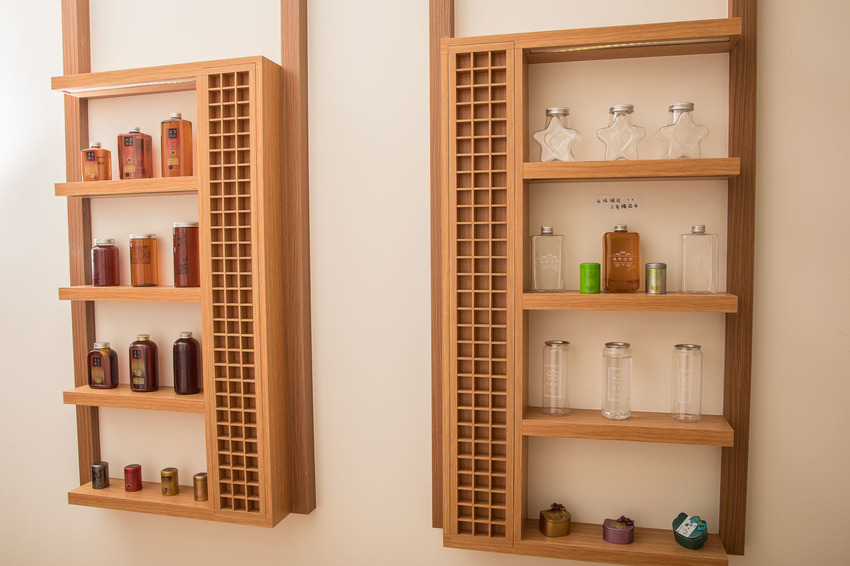 牆上的展示櫃上展示了許多造型瓶罐,我們喝的手搖飲杯子通常都會拿去回收,其實這些杯子實際上大部份都沒有確實被完全回收!紙杯為了要耐水,通常紙容器內部都附著一層塑膠材料,稱作淋膜,要完全回收紙容器,需要使用特殊的器材、設備,程序相當繁瑣,但台灣這樣回收技術並不普及,所以大部分的杯子還是去了垃圾掩埋場或焚化爐