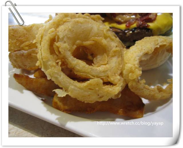 配菜有酥炸洋蔥圈,但我覺得這有點普通,可能是不在它燒燙燙的時候吃吧!