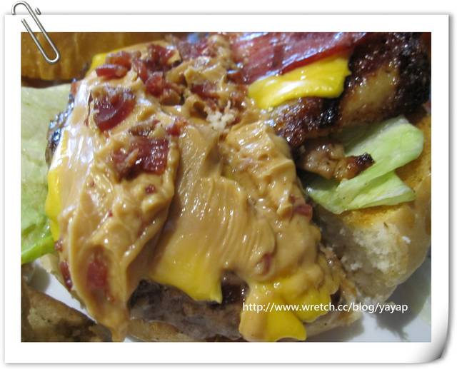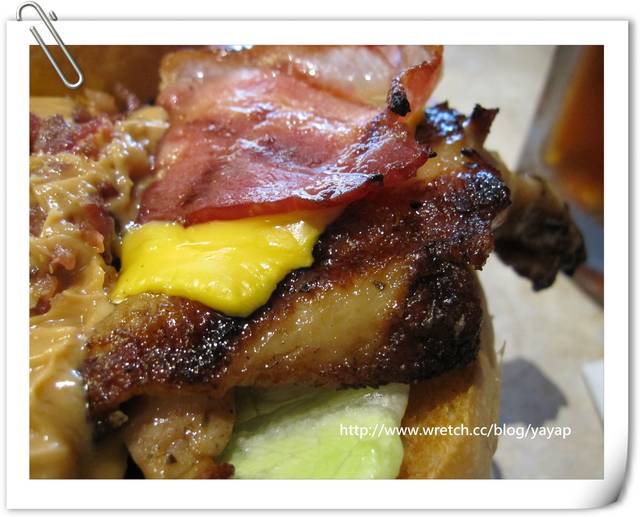 這應該算是很基本款的漢堡口味,不過它的培根煎得微焦但是嫩嫩的,不會乾喔!