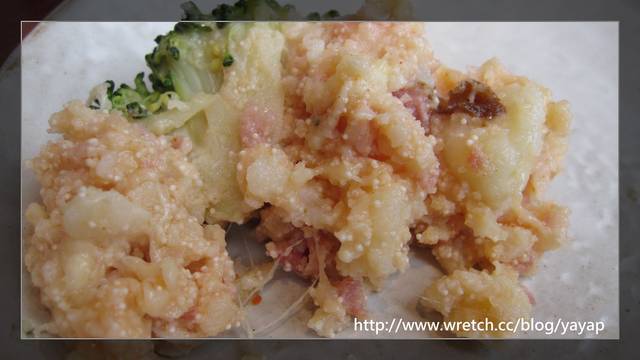 整個內容很像明太子薯片燒,不過我更喜歡這個的口感,因為薯片燒讓馬鈴薯是一片一片的,