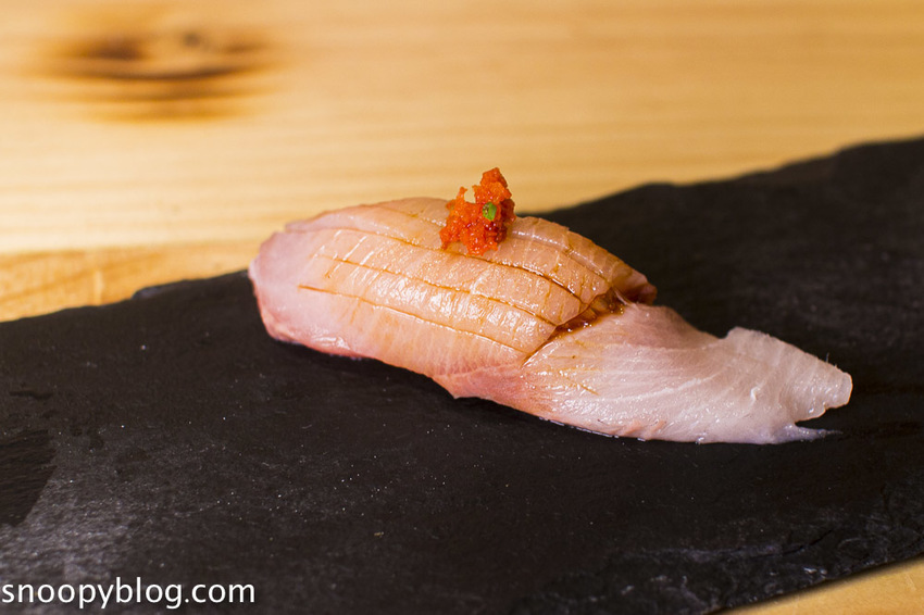主廚說這是鰤魚壽司時史努比還發出”蛤”的疑問句??