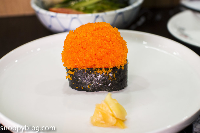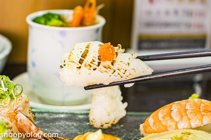 店家推薦史努比可以嚐嚐魚卵軍艦壽司,送上桌果真讓我大吃一驚,