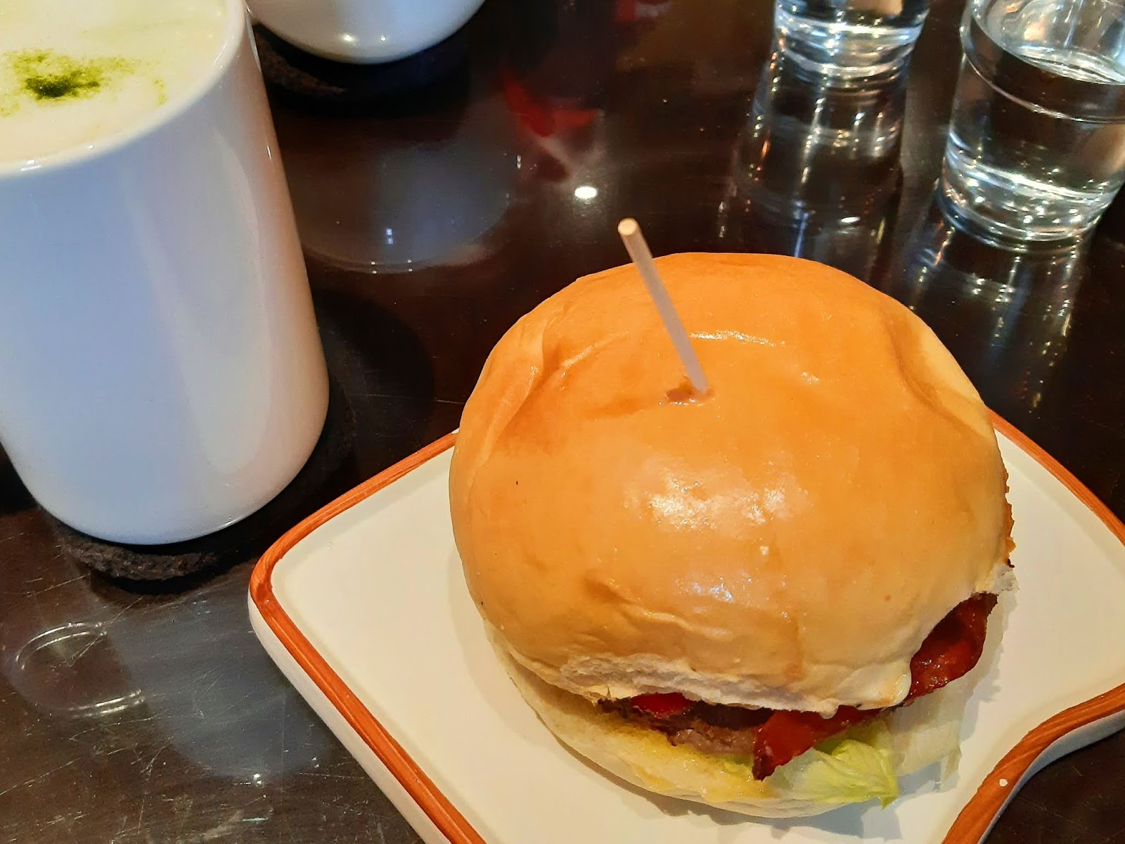 Ruby點的火烤牛肉培根起士堡,漢堡皮都抹上香氣十足的奶油,手作牛肉排超多汁,培根意外的不死鹹搭配上起士以及生菜蕃茄片,整個就是我的愛。京都宇治抹茶拿鐵忘了問可否不加糖😅,所以上桌後才發現有些許的甜,如果習慣抹茶不加糖的朋友可以先問唷。其它餐點看朋友點的也都不錯,覺得再來幾訪都沒問題呀!