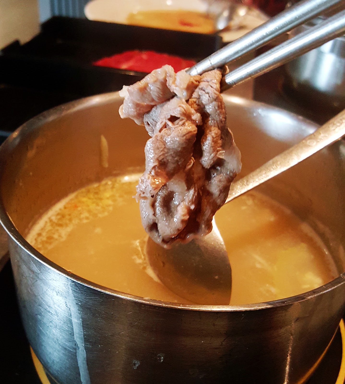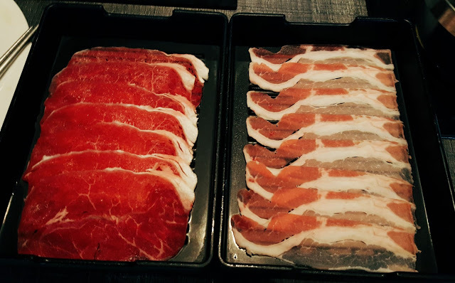 肉片有五種選擇,櫻桃鴨、五花豬、梅花豬、嫩肩牛肉片和安格斯五花牛。