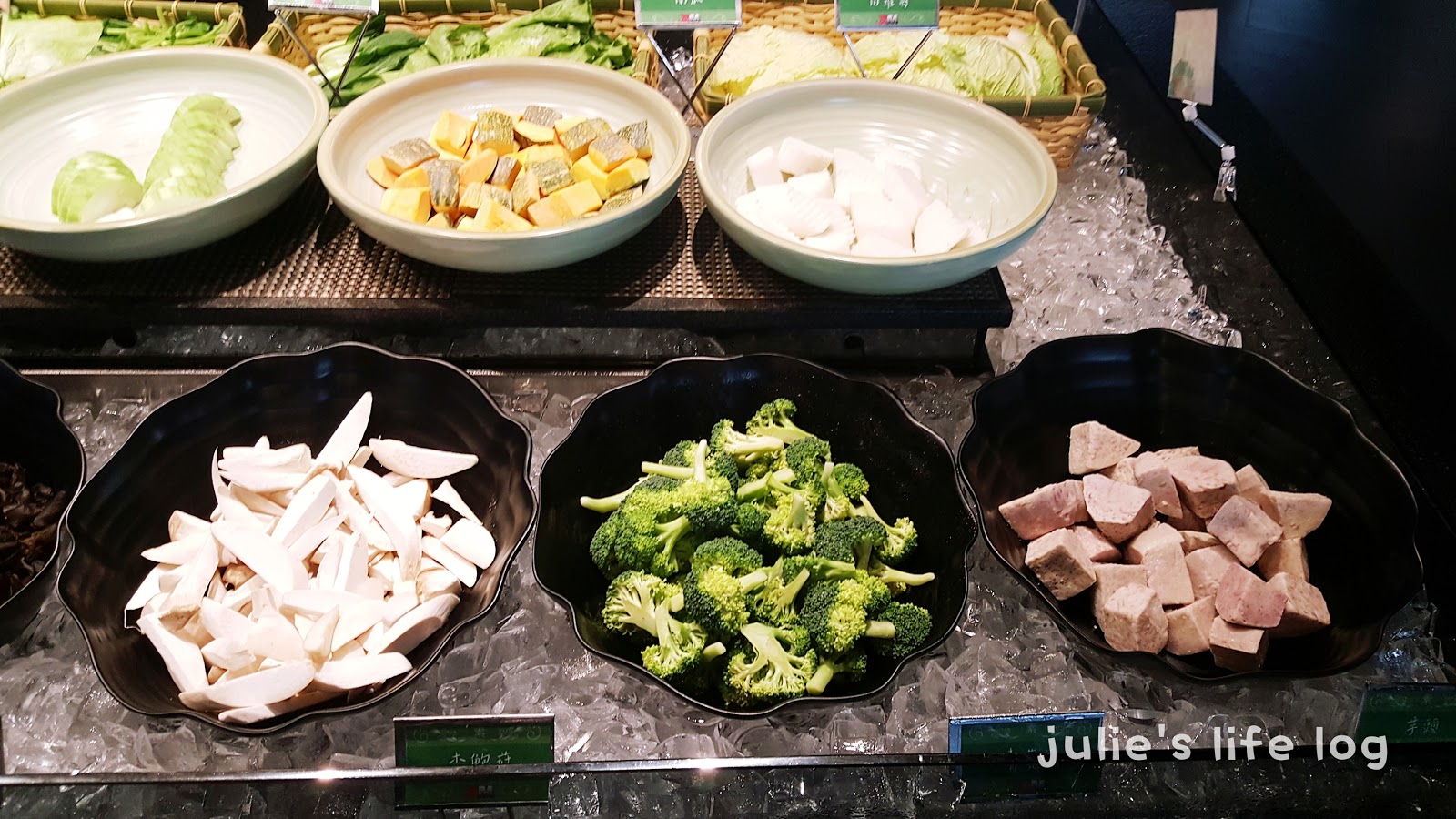 湯滾了先用蔬菜打底,清爽的新鮮蔬菜喚醒一下味蕾,火鍋料就夾幾個最喜歡的。