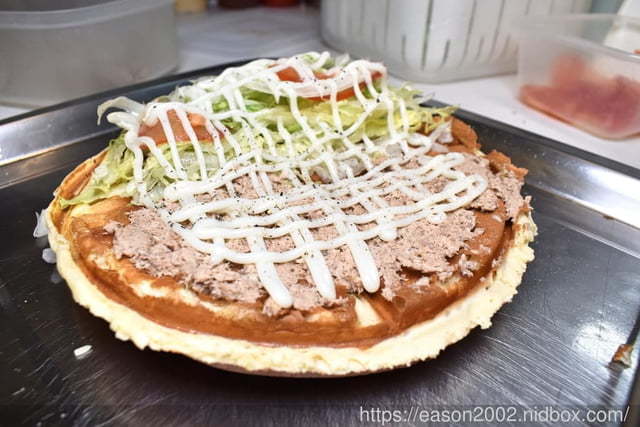 ●合起來後的「和風鮪魚蔬菜」鬆餅,看起來份量飽足感十足,非常霸氣的鬆餅。