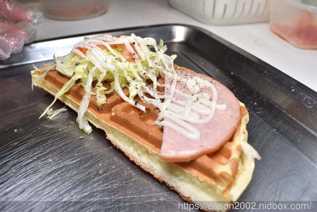 鹹式口味的鬆餅,吃起來微甜微鹹,沒有誰會過分搶戲,吃的到內容物的香氣,鬆餅原有的外酥內軟,與鬆餅獨特香氣,味道一點也不違和,反而非常的match!