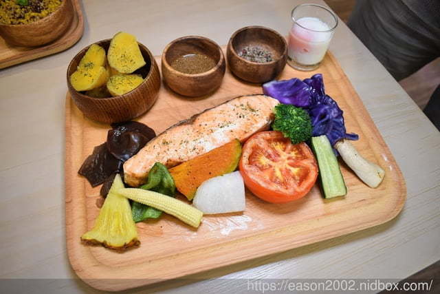 ●鮭魚中沒什麼刺,Lulu只有第一口挑出兩根刺而已,肉質新鮮可口,搭配的主食是有機小農栽種的地瓜,皮可以連著吃哦!而且非常的甜。