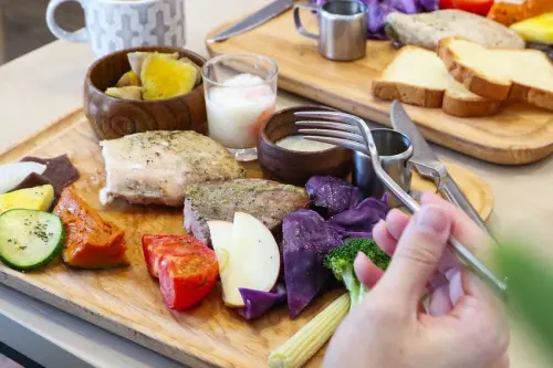 ●低溫烹調的料理方式,讓食材原汁原味呈現,12種蔬果均灑上玫瑰鹽調味,因此,吃起來不會讓人感覺無味,雙肉套餐搭配的是養生糙米飯,還有滑嫩口感的水波蛋。