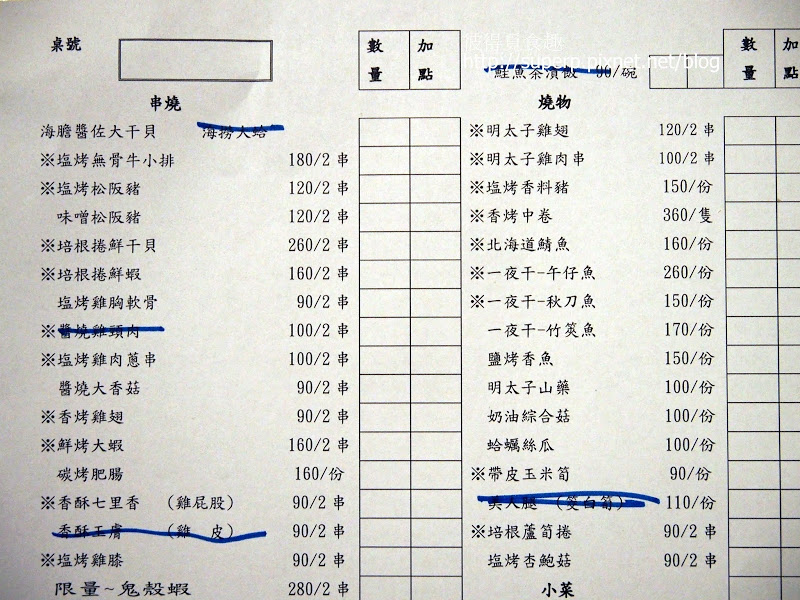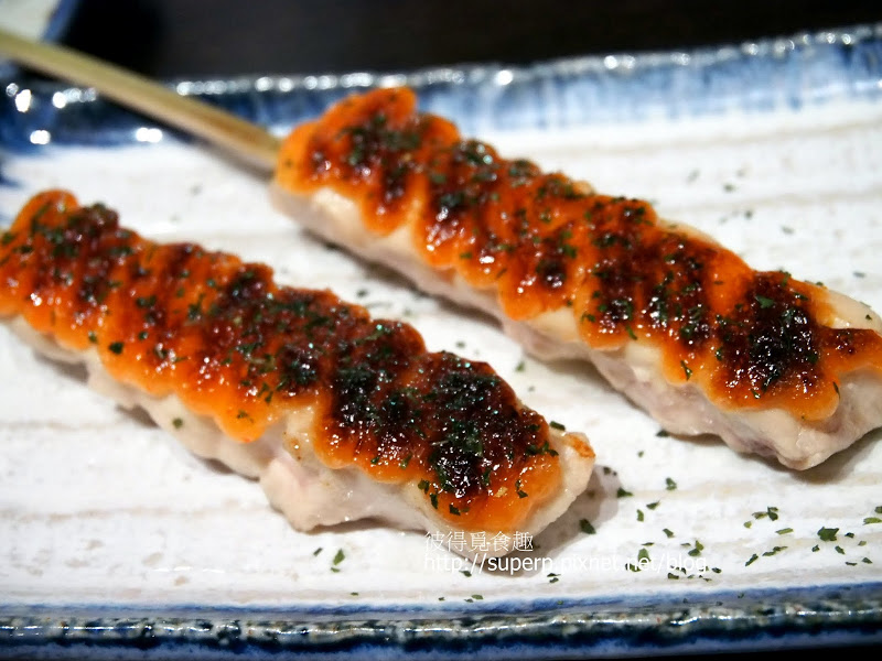 明太子雞肉串$100(一直很愛明太子類的料理,果然跟雞肉一起烤也很有提味的作用,大推!)