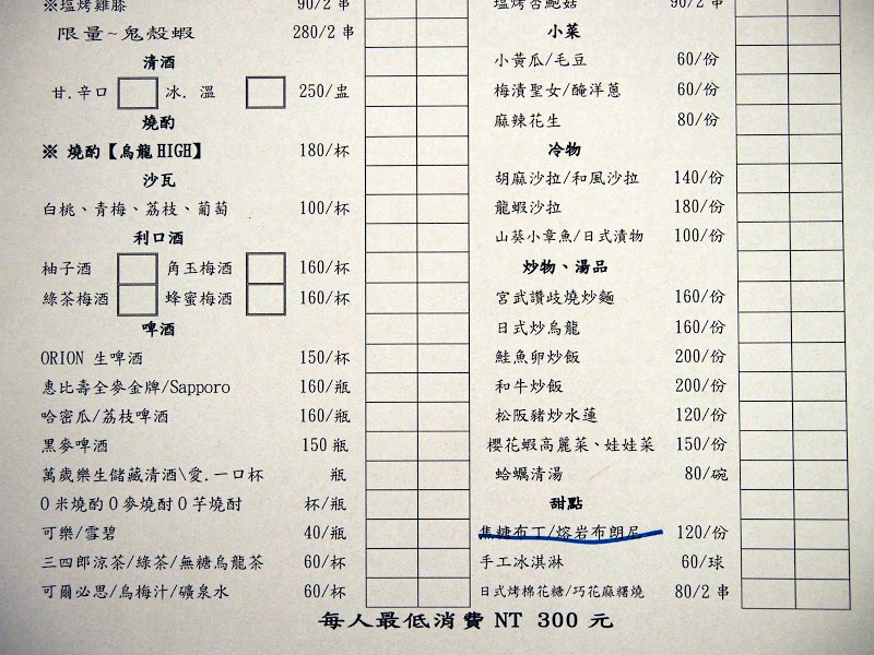 菜色不少,而且價格算是一般東區的居酒屋價位。