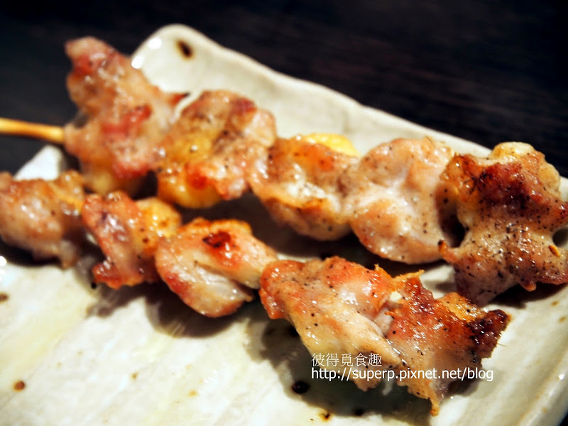 鹽烤雞膝$90(這是雞的膝蓋關節軟骨,也很酥脆,稍微的調味就很好吃,大推!這我們之後又追加了一份)