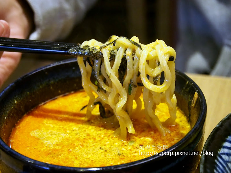 地獄激辣沾麵$280(沾醬的部分,我跟友人都覺得頗為死鹹。之前吃麵屋輝時,鹹度是不低,但鹹的有層次,個人覺得麵屋輝大勝。而且麵屋輝的麵條也比較有彈性。)