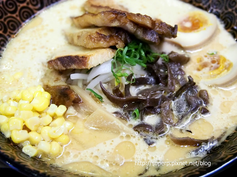 華麗三士拉麵$270(這是店內的招牌。乳白色的湯頭,四大塊叉燒,然後還有溏心蛋,賣相極為可口。湯頭是還不錯,不過跟內湖豚骨家比起來,相對的就比較單調,而且在嘴巴內的膠質濃稠度不高。麵條的硬度沒有提供選擇,這點跟其他店家比起來就差了些。像是我習慣吃硬一點的麵,今天吃到的就頗軟。至於叉燒,份量跟厚度都令人愉悅。吃起來並不是軟爛即化的風格,不過我對於這種厚實有勁的叉燒也頗為喜歡。這碗麵因為叉燒的緣故,我還是推!)