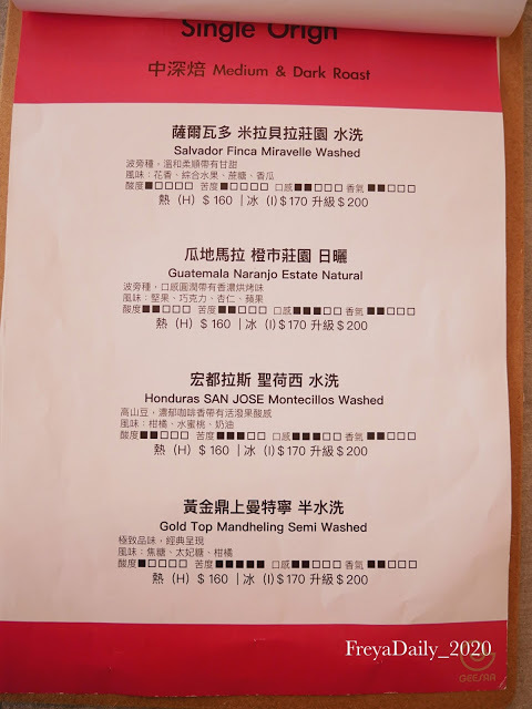 菜單介紹寫著,這款咖啡有李子、甘蔗、堅果、奶茶香氣