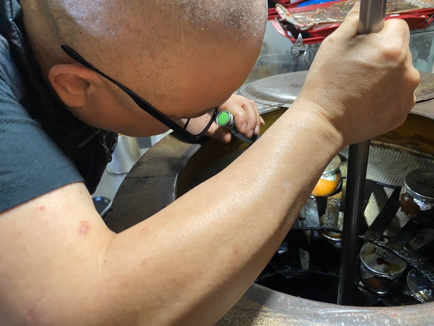 原來在甕裡拿瓦罐也是要有技術的!趁老闆在介紹時拍了幾張XD