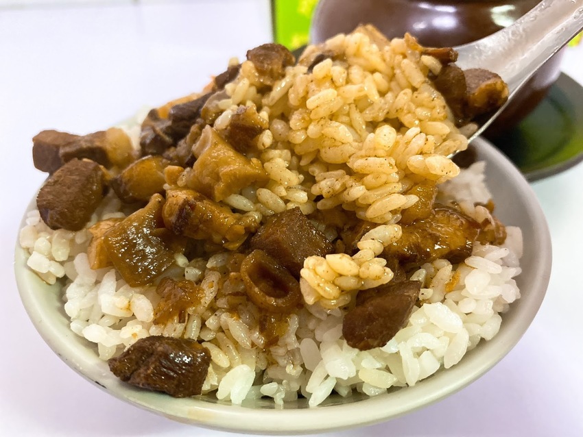 淡淡藥材香的滷肉飯,吃起來不會過於肥膩,老闆說都是自己手工切的,肉質是選用五花肉,如果敢吃辣的,可以再加上辣菜脯,會讓滷肉飯更加可口。