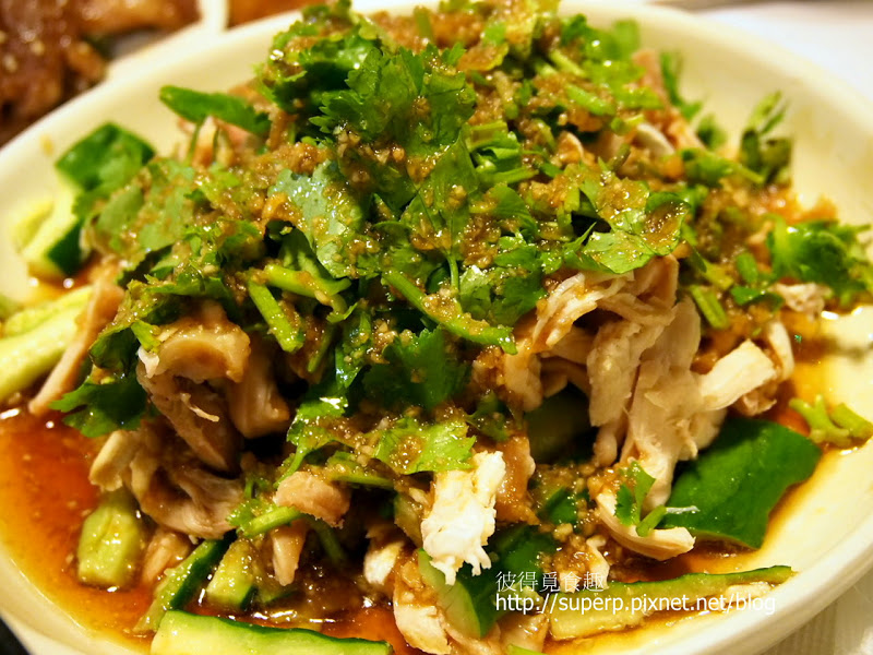 韓式山東燒雞$330(雞肉鮮嫩,跟小黃瓜還有香菜以及大蒜以及醋的味道非常搭,很爽口,推!)