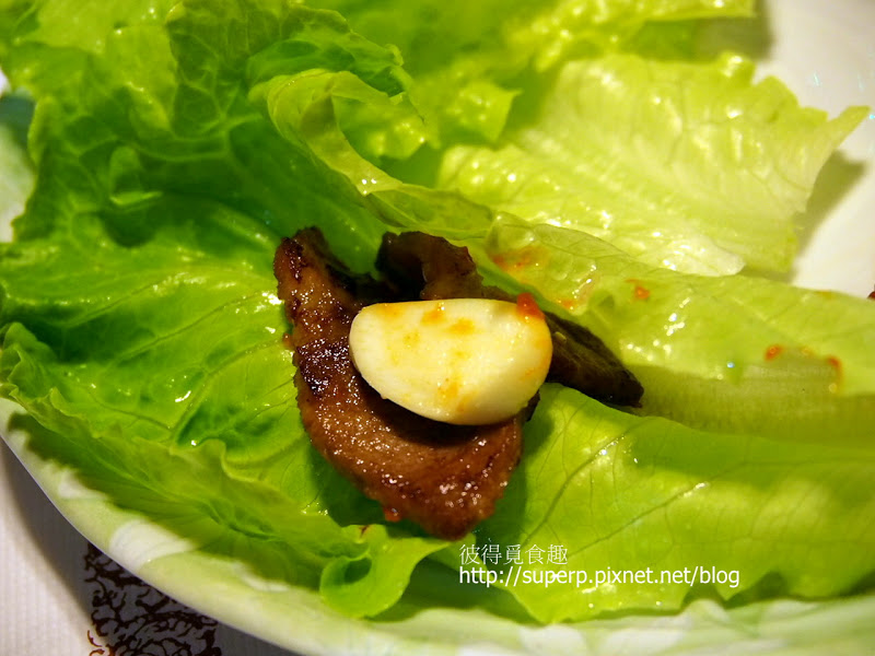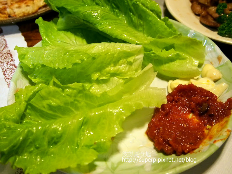 烤五花包生菜$320(五花肉切的太薄,有點硬,而且過鹹,可惜了,不推。還是應該選人參豬肉才對的)