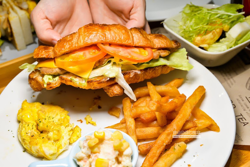 很久沒吃到酥脆的可頌了,所以特別選了維也納豬里肌可頌套餐,可頌裡面夾著起司、生菜沙拉和里肌肉,要快點趁熱吃,一口咬下有可頌的酥、生菜的爽脆、番茄切片的多汁和軟彈的里肌豬肉,口感多層次!