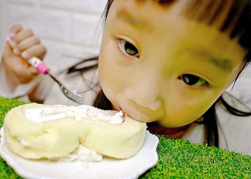 最近下午是雨天.我和小卉寶貝都在家中下午茶.一人拿一片蛋糕捲配著冰紅茶一起吃好過癮!
