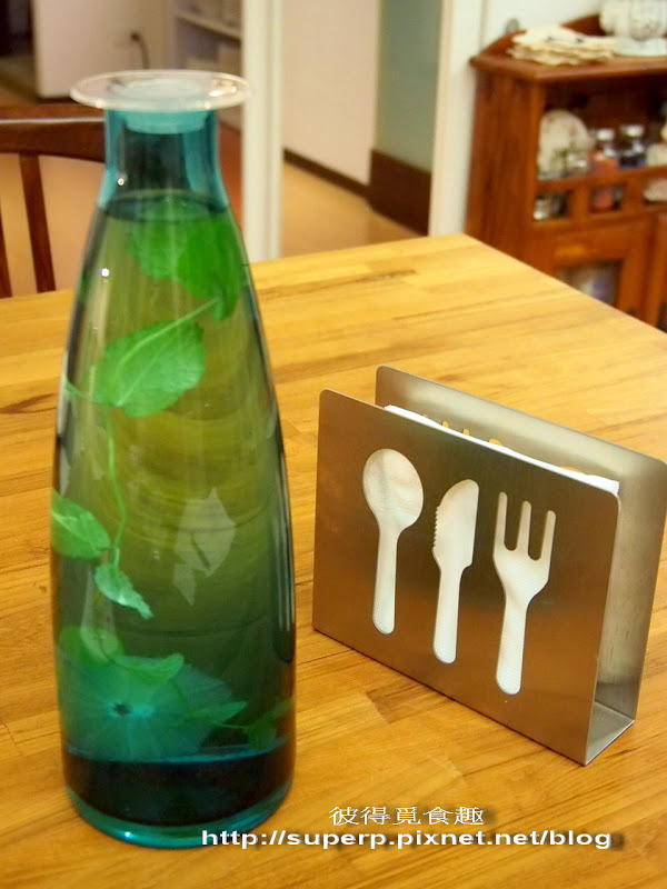 提供的水也具巧思。裡面除了放檸檬片,還放了薄荷葉。