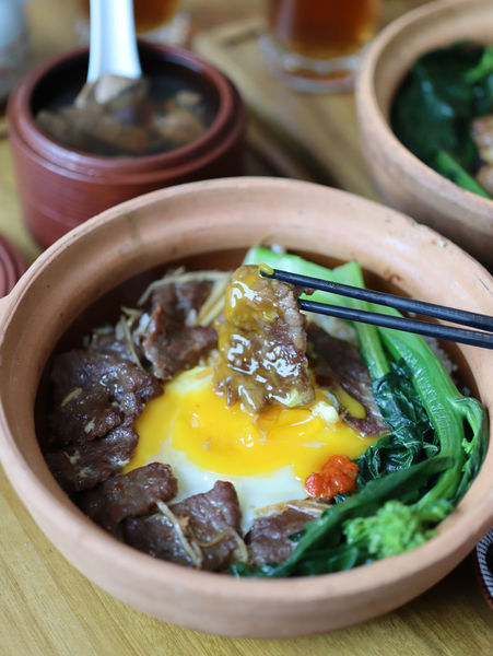 窩蛋牛肉肉質軟嫩,配著半熟蛋蛋液更迷人。