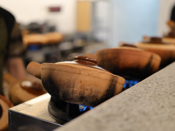 開放式廚房,可以看到一鍋鍋直火烹調中的煲仔飯。