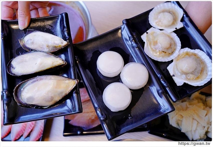 喜歡貝類的朋友,淡菜、珍珠貝、扇貝都任你吃,貝類肉質都蠻肥厚的!中間那盤是Q脆的珍珠貝,煮完會吸附湯汁吃起來很鮮甜