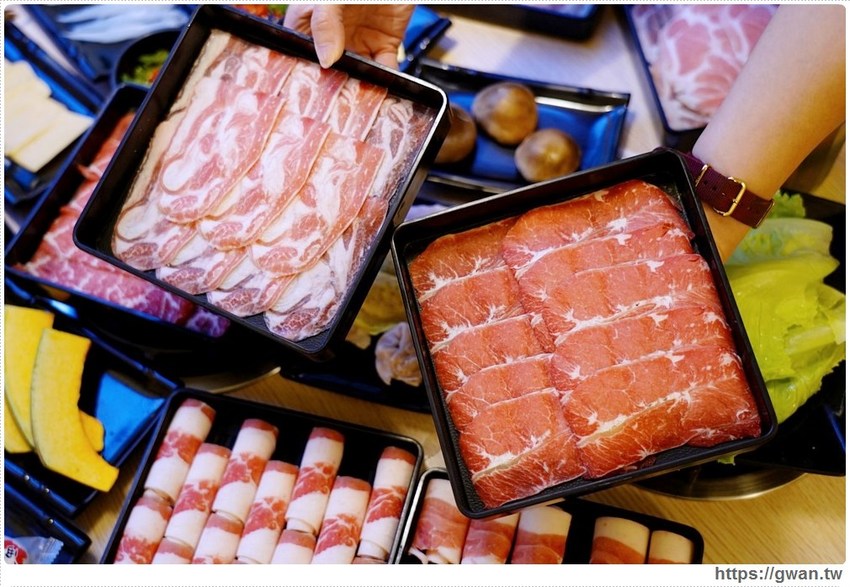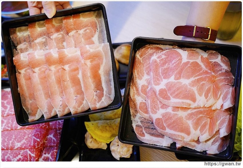 不吃牛的朋友就可以專攻豬肉,左邊小麥豬、右邊圓圓的是梅花豬,梅花豬切片蠻大的、吃起來有甜,小麥豬相對起來口感更為扎實