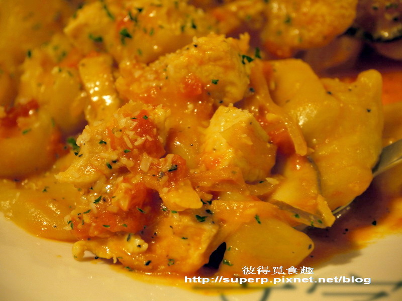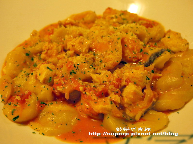 馬鈴薯雞肉麵疙瘩$350(馬鈴薯麵疙瘩很Q彈,雞肉跟紅醬也很搭,好吃,推!)
