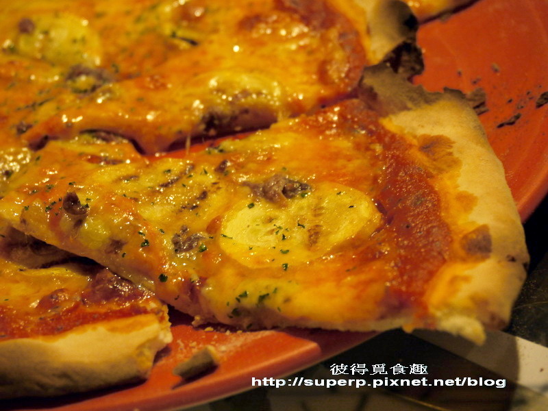 披薩的話也挺不賴的,喜歡薄脆風的人應該會愛。我個人是比較喜歡Zoca那種外酥內厚帶Q的風格。