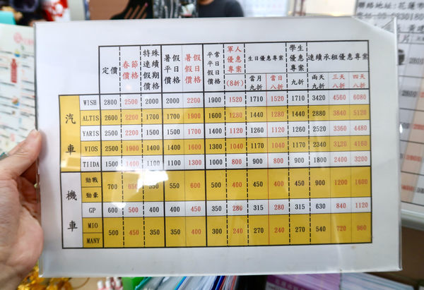 但到了花蓮後還是毅然決然的改租汽車(笑