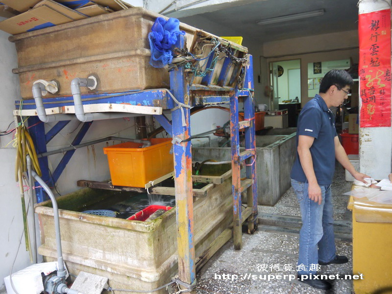 店看起來頗為普通,一堆水槽和水族箱,裡面都是一堆海產。要看季節,以往都會在這邊看到沙公沙母處女蟳,或龍蝦,九孔,瀨尿蝦,甚至活石班。