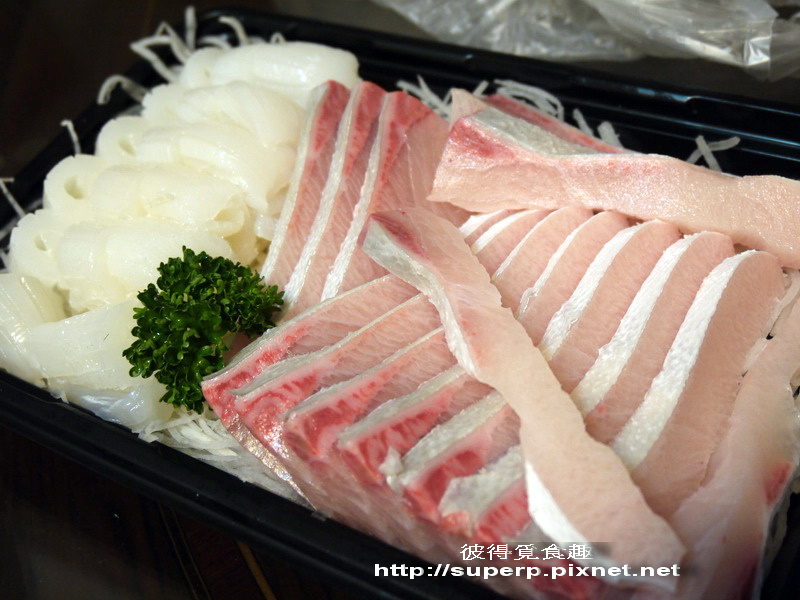 $500的紅紺肚和$200的花枝(原本要買紅紺就好,但友人說也來個紅紺肚看看。紅紺是我僅次於鮭魚後最愛的魚料,因為非常的有彈性。肚子的部分也甜美無比,特推!花枝也很不錯)