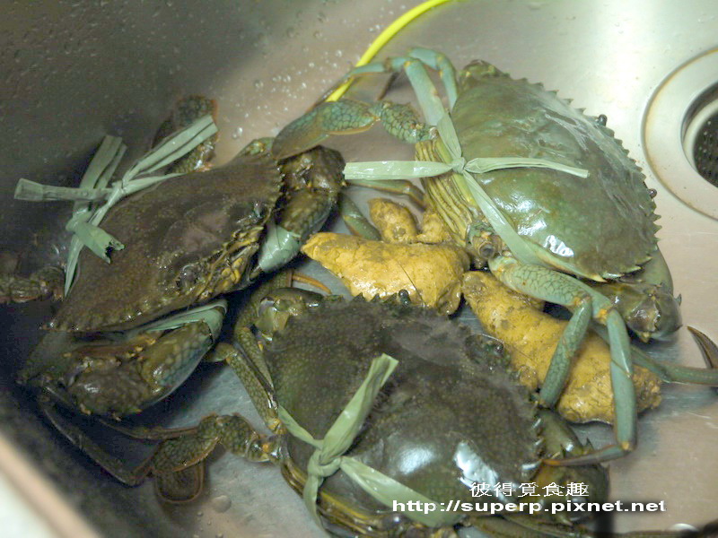 跳過殺螃蟹和清理的程序,把沙母跟薑片和一些米酒清蒸大約8分鐘後就可以了。這天的蟹黃也是極為飽滿,肉的份量中等。以前有在這買過更肥美的螃蟹,不過要買到好貨真的要碰運氣。