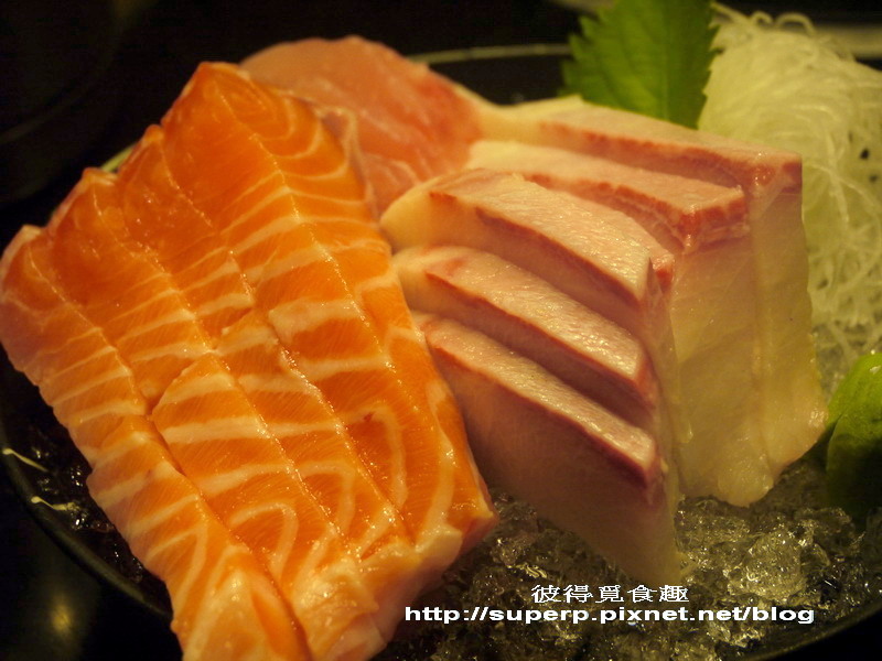 綜合刺身$460(這天給的是鮭魚,旗魚,以及紅紺。每片的厚度跟長度都是一般日本料理店的差不多一倍吧,吃起來非常過癮,而且份量真的超級大方。以在台北的店來說,不包含外帶,這種價格搭配這種份量,春日的C/P值應該是打遍天下無敵手了。如果能切薄一點就好了,因為吃起來比較方便,而且比較不會膩。不過還是大推啦!)