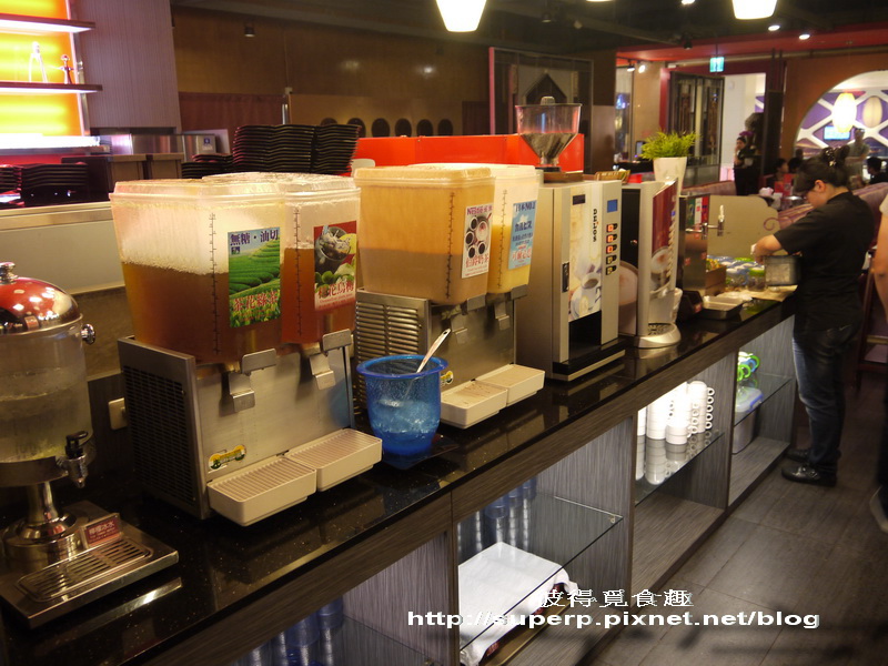 裡面的裝潢精緻寬敞,位置很多。不過拍的當時還早,比較空曠,之後就完全呈現客滿的狀態。醬料,飲料,冰淇淋,水果以及甜點都是採自助式的方式拿取。