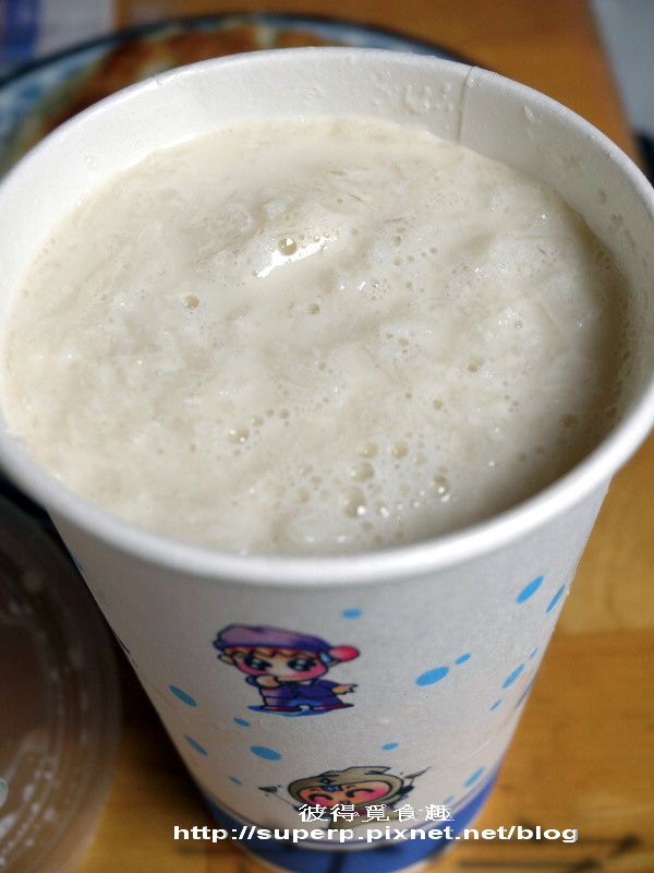 豆漿$20(裡面都是碎冰,在夏天喝起來冰涼爽快。味道極為濃郁香甜,而且帶著微微的焦香味。不過總覺得幾年前在這邊喝到的豆漿比較濃,以前記得是呈現接近豆花跟豆漿之間的濃度。不過,這種濃郁程度應該在台北還是無人能出其右,大推!)