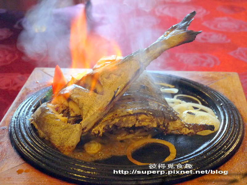 威士忌酒燒烤魚(也是頗有噱頭。鐵板上擺了切半,類似鰹魚的魚,然後淋上了宜蘭當地葛瑪蘭威士忌,點火來燒,香氣十足。不過這魚肉質粗糙,可惜了,所以不推)
