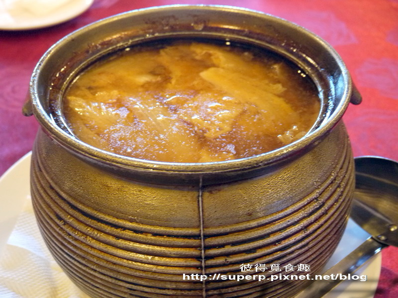金華火腿雞湯(湯頭非常的鮮美,喝得出來火候熬的很夠。雞骨頭都燉到一咬就碎,感覺好像是用壓力鍋煮過,反正非常好喝,大推!)