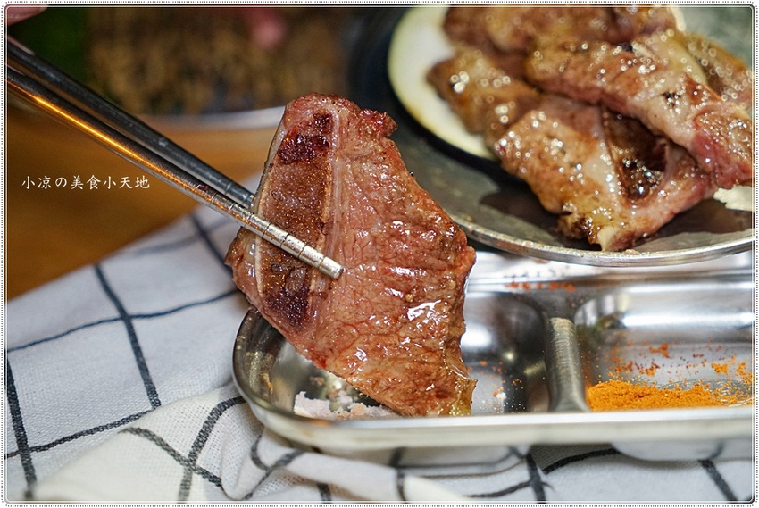 帶骨處多富膠質美味,適合烤到7分或全熟,有焦脆的筋肉讓口感有嚼勁,肉質部分軟嫩沾上玫瑰鹽就有多層次的味蕾享受