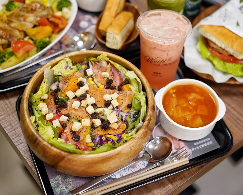 來到Woopen木盆新竹關新門市肯定要點上一盆比臉還大的木盆沙拉啊!挪威燻鮭魚沙拉有多達十幾種蔬食組合,喜歡清爽一點的我推薦你試試優格醬、梅子醬還有和風油醋汁,喜歡濃郁又重口味的我推薦你凱撒醬及日式胡麻醬,Woopen木盆的醬料真的是會讓你一吃就愛上,完全重成本在沙拉與醬料,整體的調配比起市面上的醬料也有所不同。