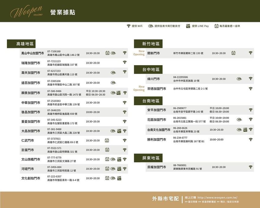 ▲Woopen木盆分店資訊