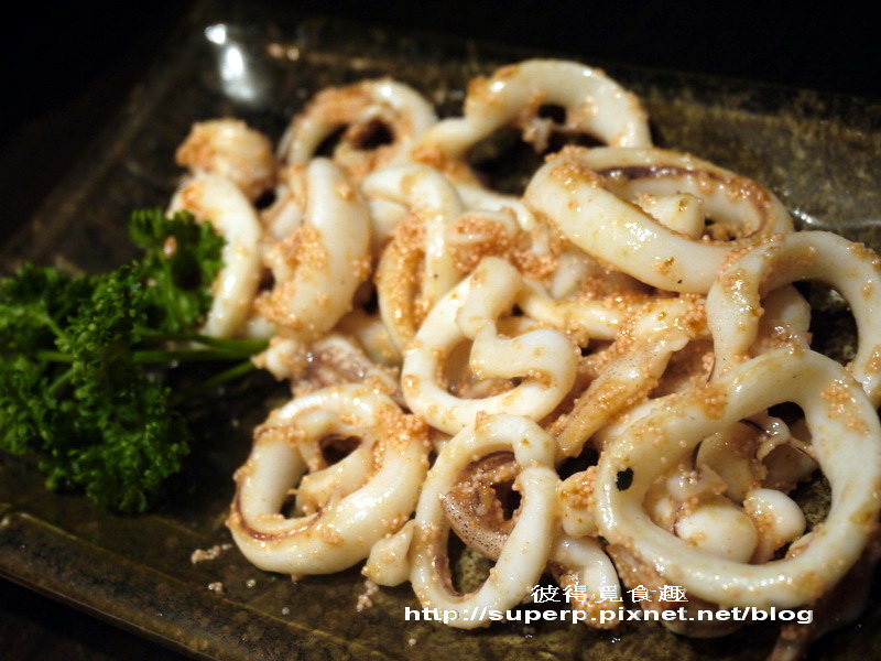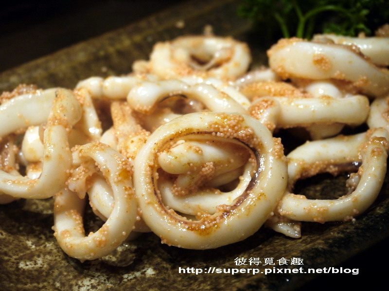 明太子愛上透抽$180(透抽口感很Q彈,而且本來就很搭明太子。不過調味稍微有點重,可能是要搭配啤酒的關係,不過還是推!)