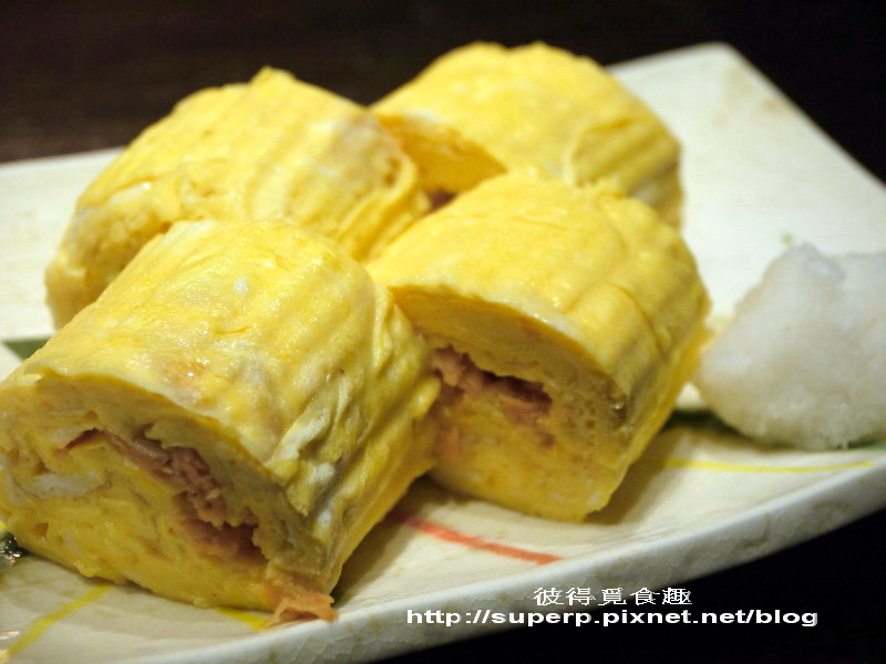 玉子燒捲鮭魚$180(玉子燒柔軟,微微的甜味跟鮭魚的鹹味有互相襯托的效果,推!)